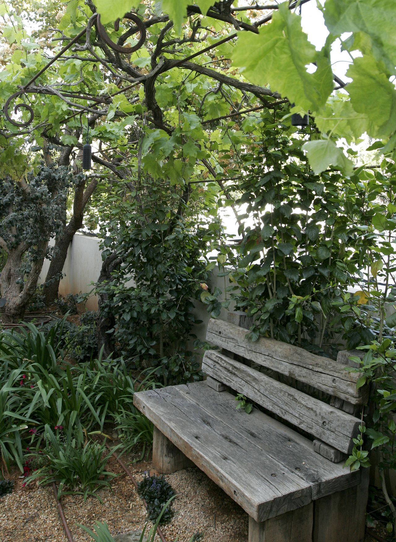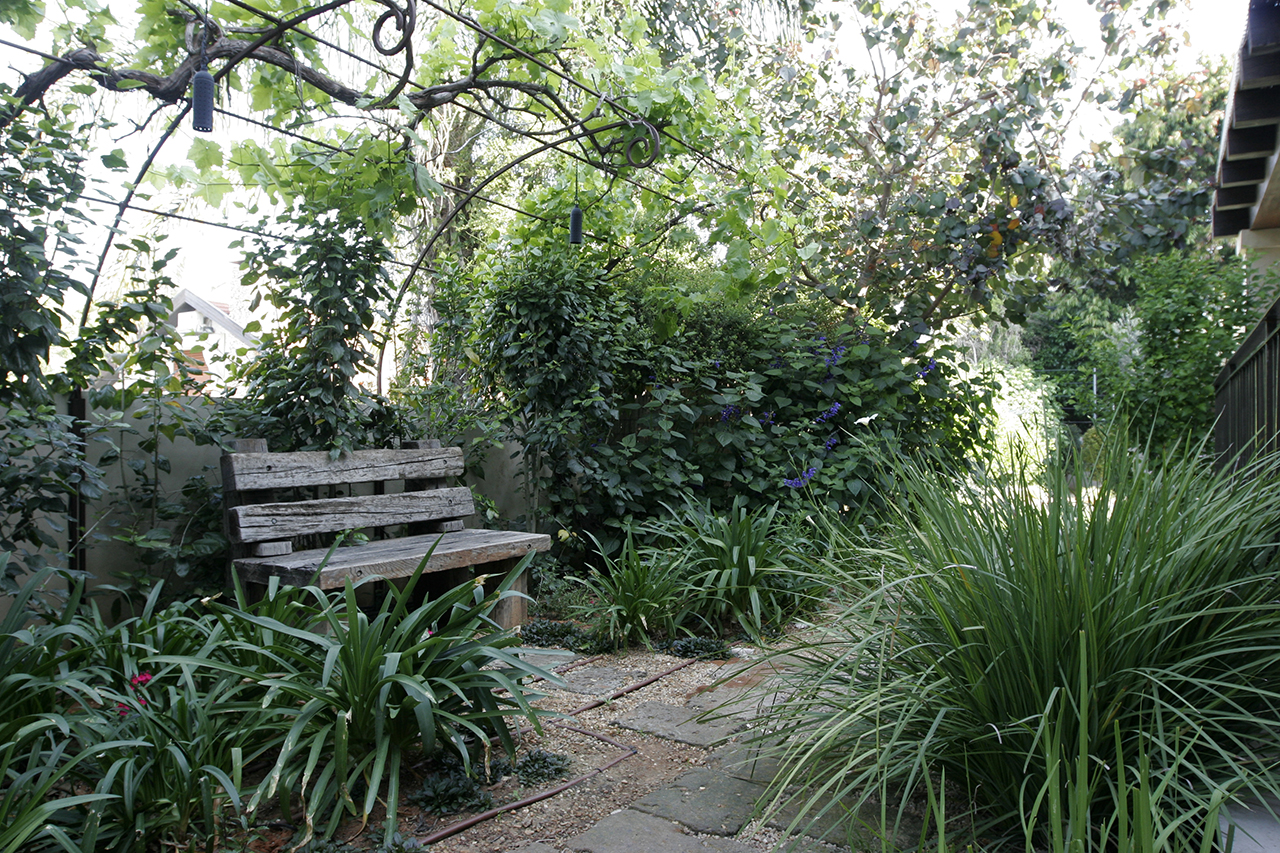 גינת קונספט בסגנון כפרי מלאה באלמנטים מיוחדים