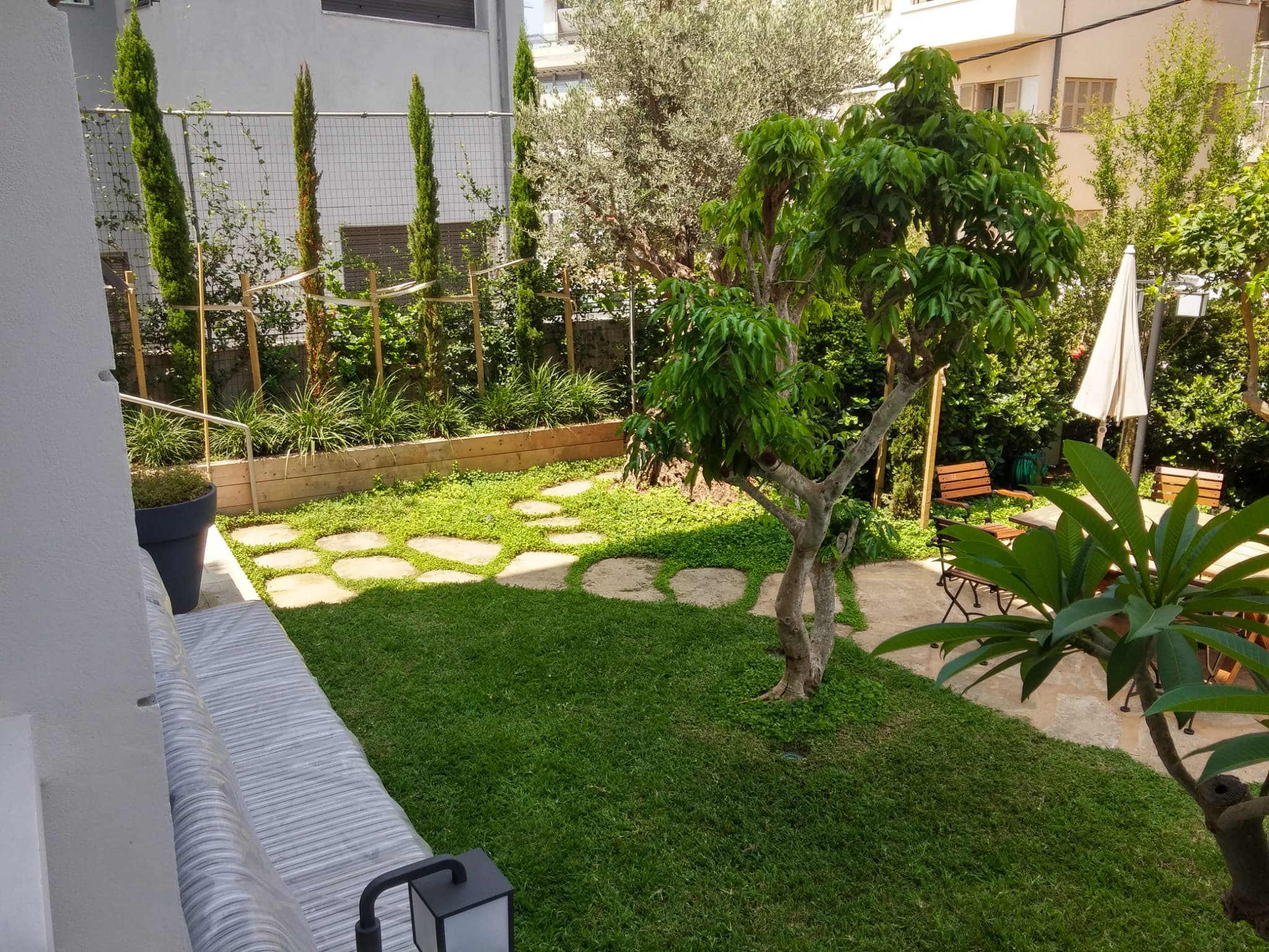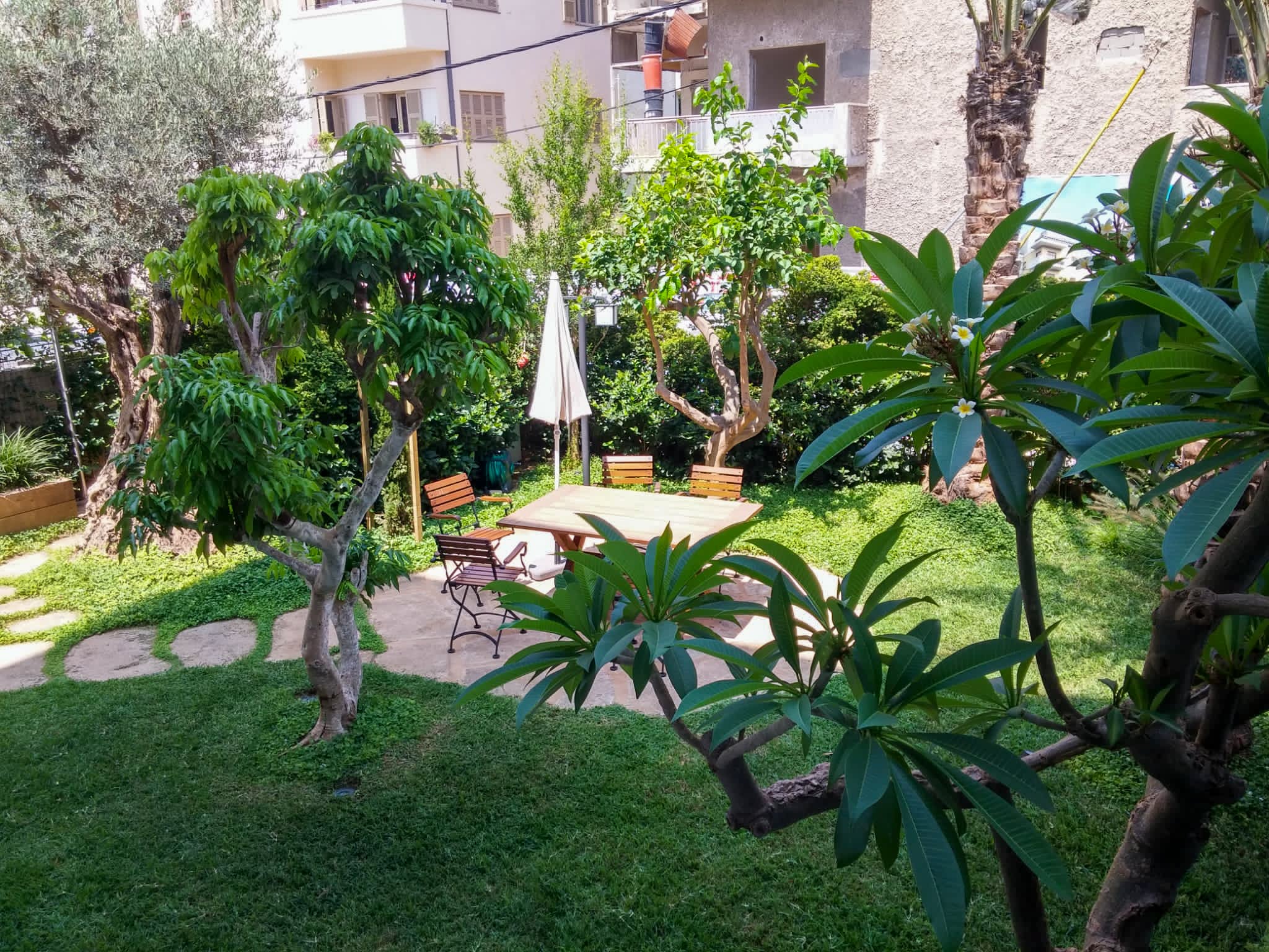 גינה מניבת פרי שמשמשת גם לאירוח ומתאימה לאופי הבית - בנין לשימור ברחוב פינסקר ת"א, הבית הראשון של בן גוריון. גינה מעוצבת ברמה גבוהה מאוד צמחיה בוגרת, עצים בוגרים בהובלה עם מנופים - דקלים בוגרים בני 30-40 שנה, עץ זית בן 200 שנה, עצי פרי - ליצ'י, לימון, תפוז, ברושים בוגרים, שיחים בוגרים. פינת ישיבה בריצוף אבן כורכר, מדשאה מעורבת - דשא עם דיכונדרה יפנית, אדנית עץ להשלמת המראה, שבילי הליכה מאבן כורכר, כדים ואדניות, ספסל ישיבה מאבן עם מזרן וכריות פסים, תאורה.