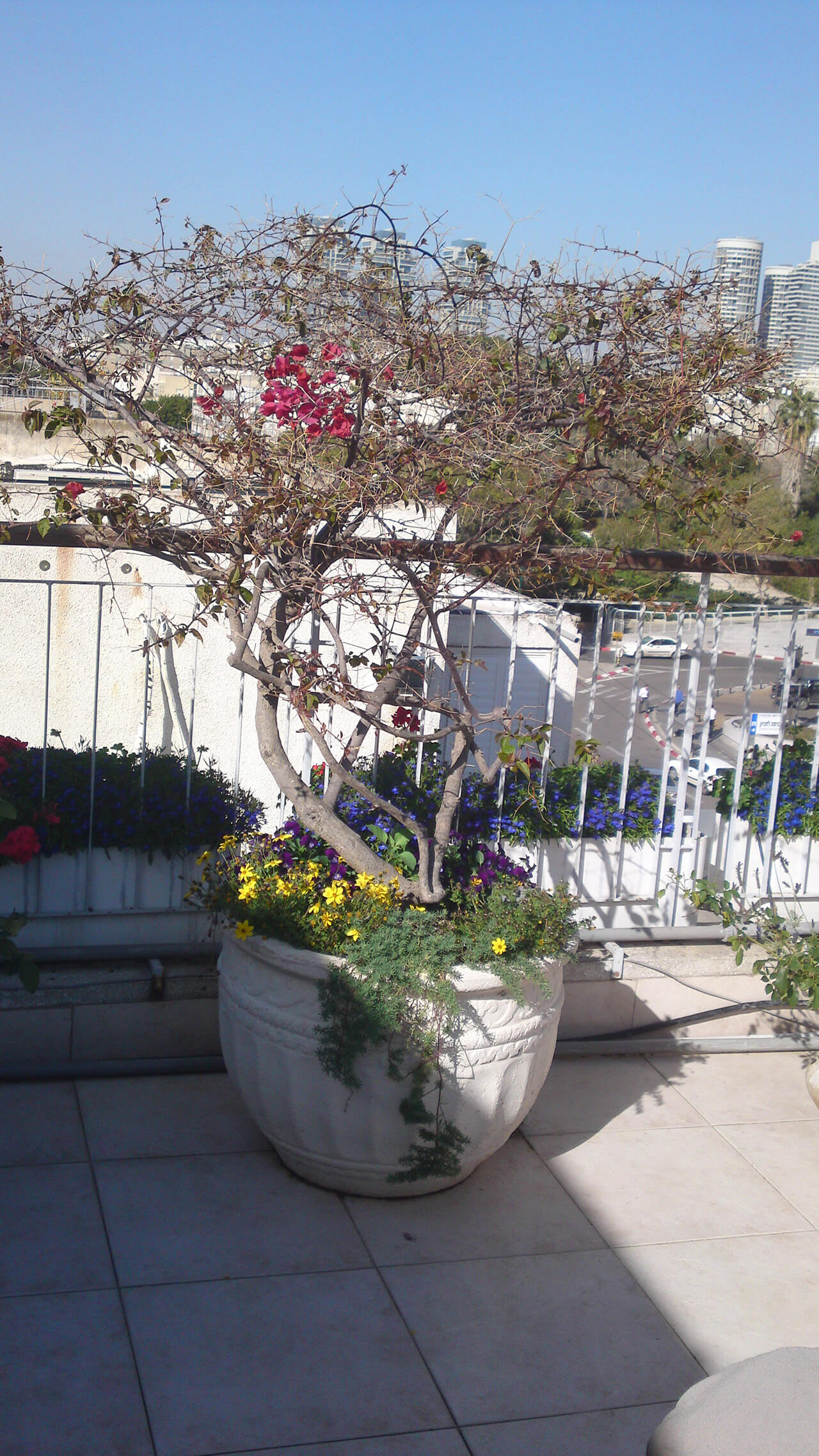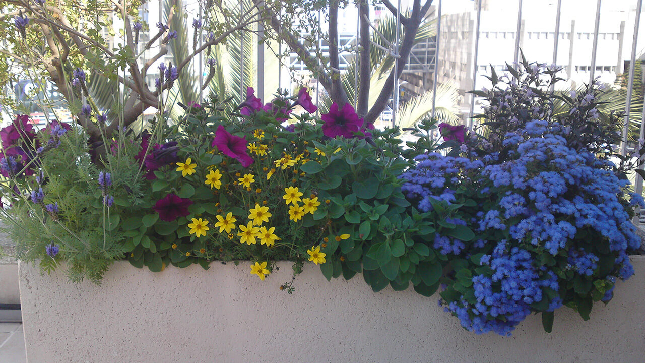 גינת גג אביבית בצבעים מרהיבים