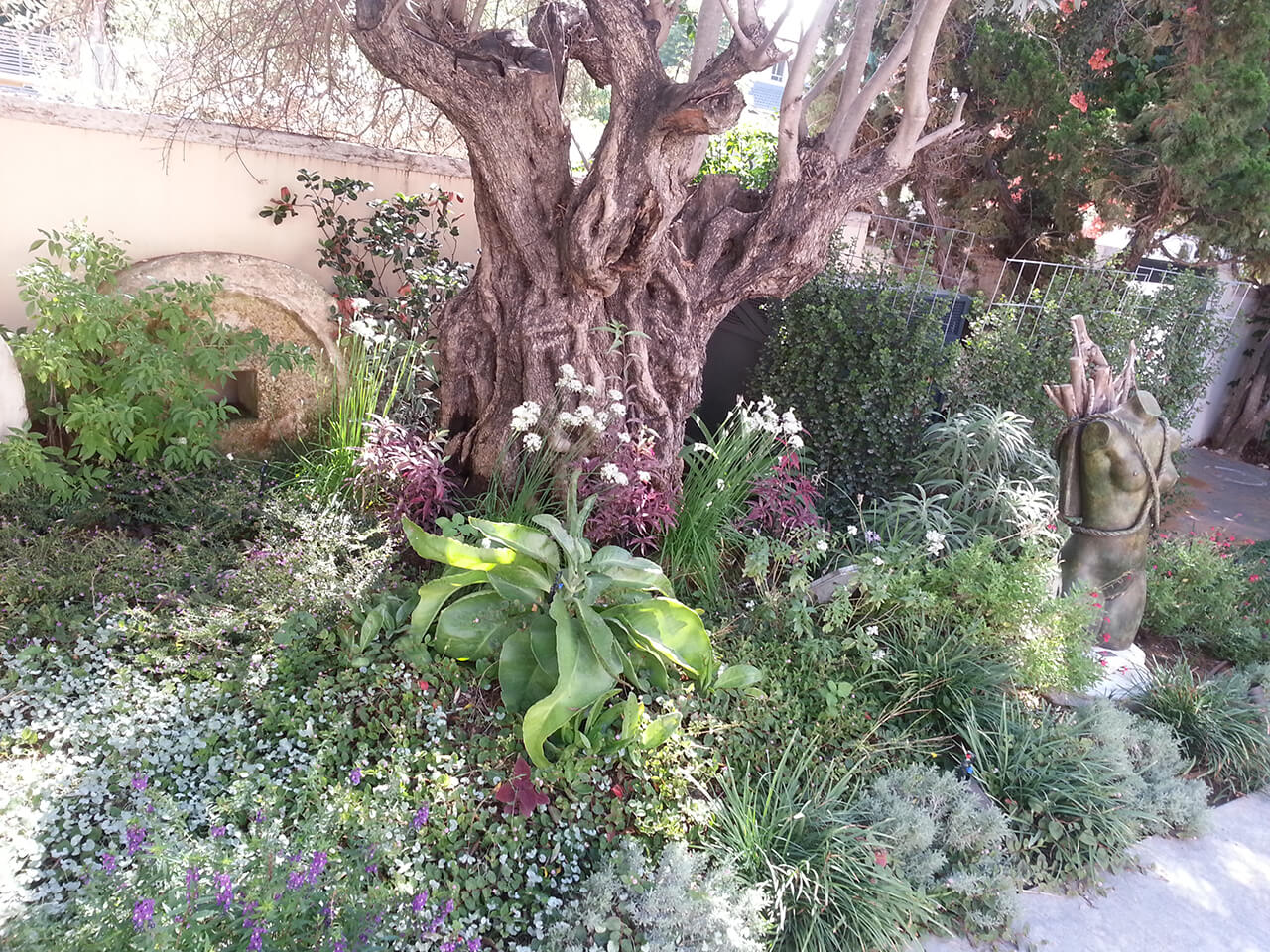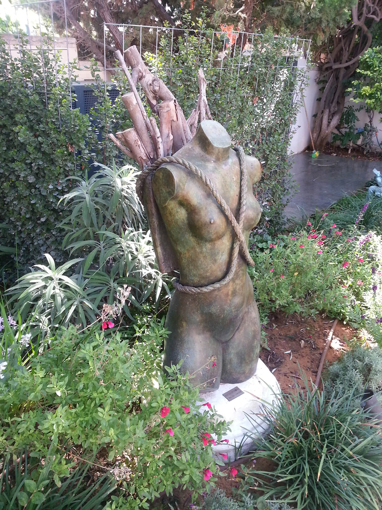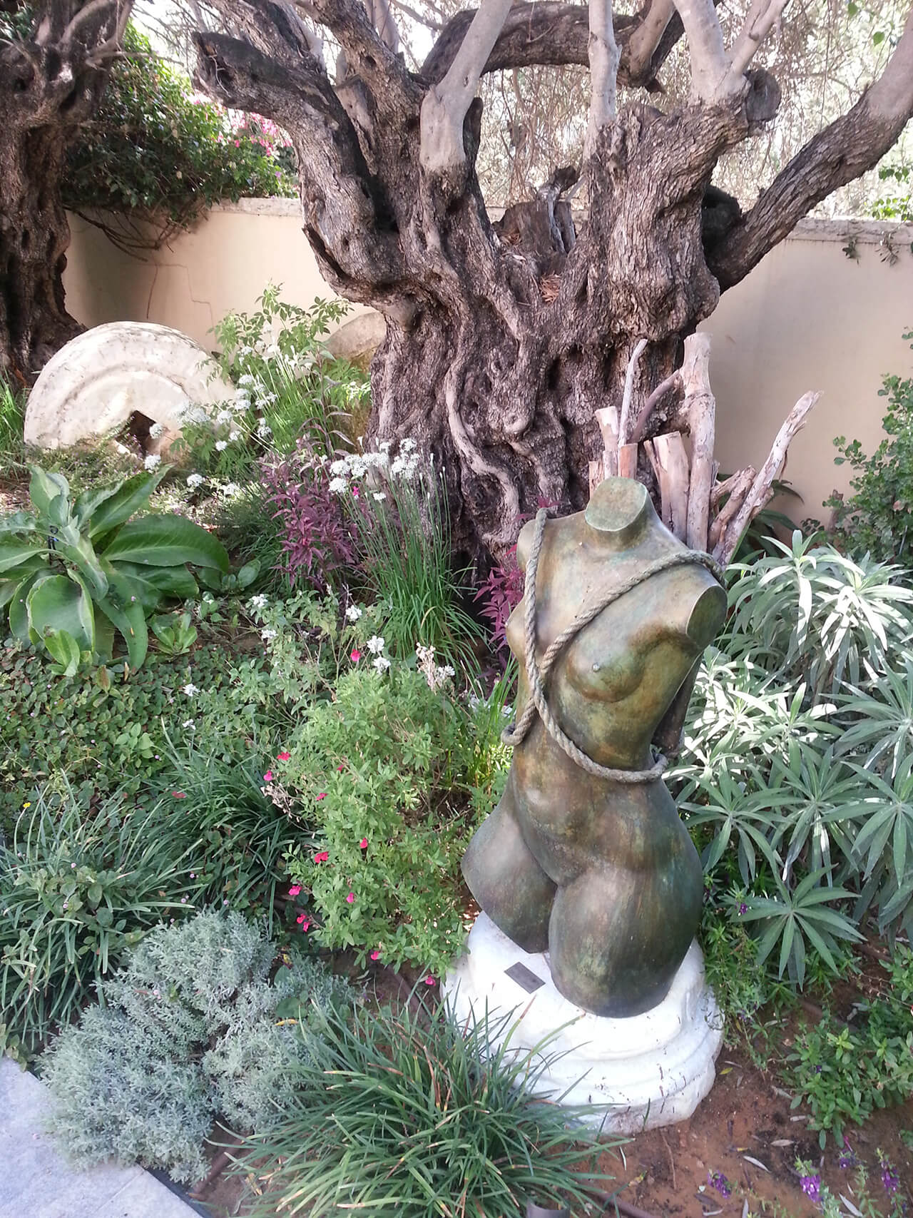 גינת קונספט המשלבת פרטי אמנות נדירים