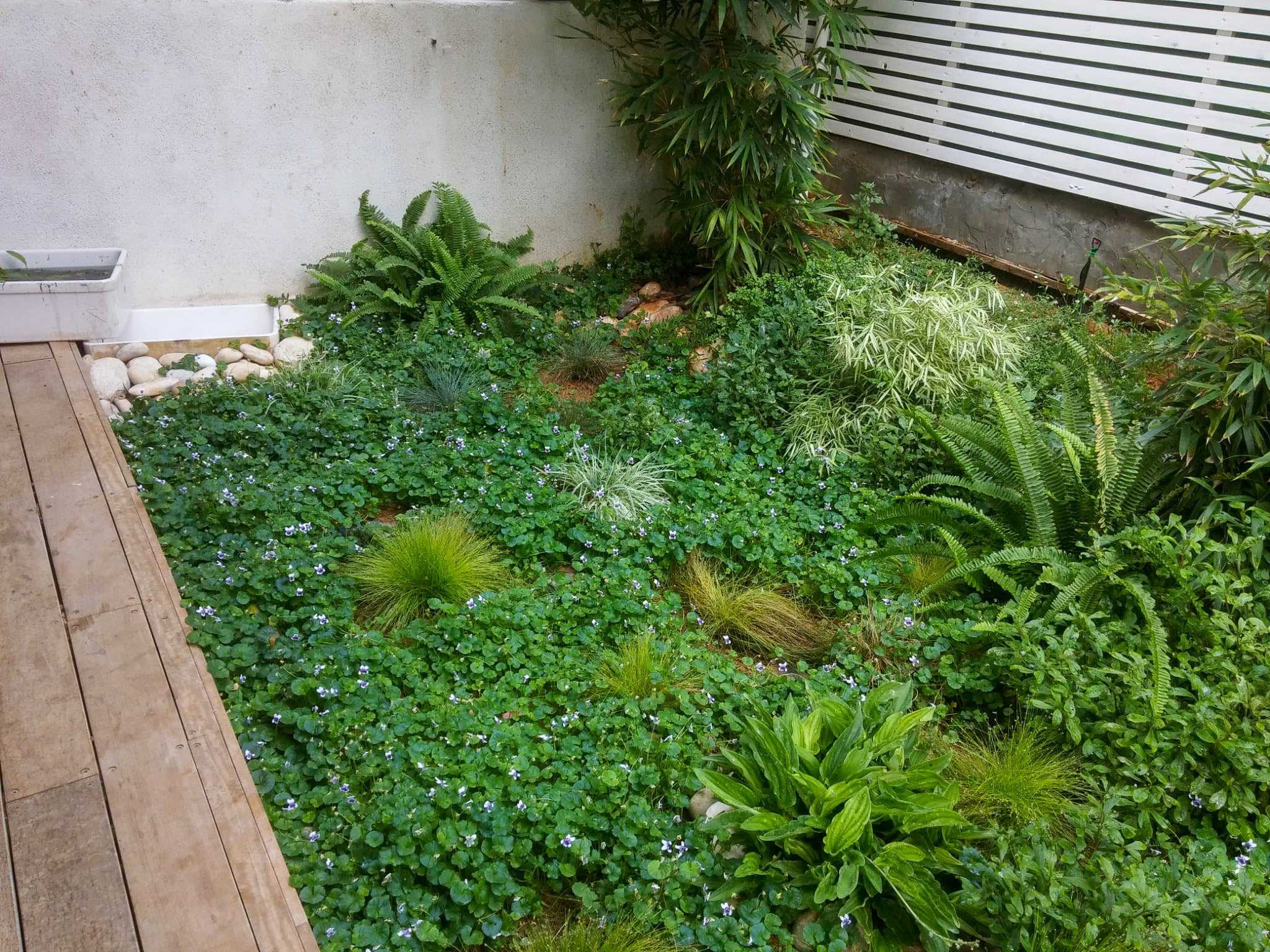 גינה בעיצוב נקי ומינימליסטי בשכונת שפירא ת"א